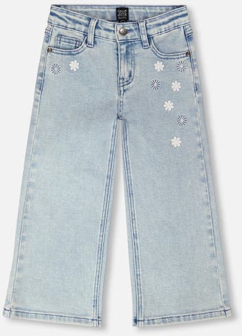Casual and trendy, our wide leg light blue denim jeans bring comfort and playful charm to everyday outfits. These jeans feature a relaxed wide-leg cut, classic five-pocket styling, and delicate daisy embroidery that adds a whimsical touch. From the “Explosion of Daisies” collection, they pair effortlessly with tops or blouses for a fresh summer look.