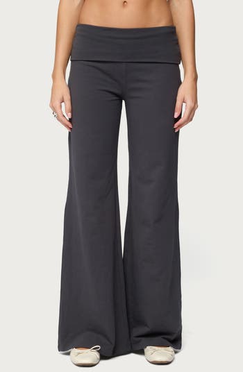 Enjoy all the maximums—ease, comfort and style—in these knit pants designed with a fold-over waistband and wide, flowy legs.