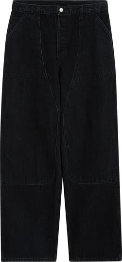 Oversized front pockets with offbeat seamwork bring extra personality to these wide-leg carpenter jeans constructed from midweight nonstretch denim.
