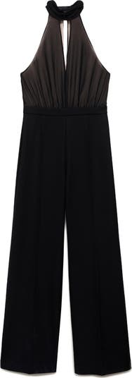 A front slit and long shawl ties enhance the contemporary drama of this occasion-ready jumpsuit in a flowy wide-leg silhouette.