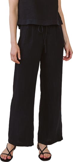 Keep your casual style on point with these wide-leg linen pants complete with ladder embroidery up the sides.