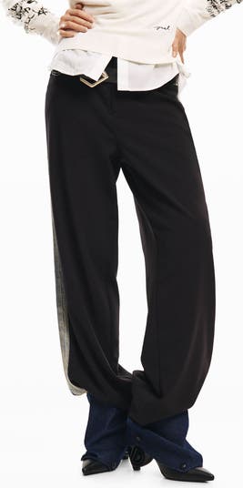 Denim trim adds a hint of casual style to these essential wide-leg pants.