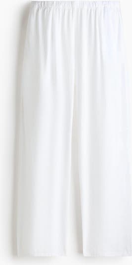 Loose-fit trousers in an airy weave made from a linen and viscose blend. Low, elasticated waist, discreet side pockets and wide legs with inverted box pleats at the top.