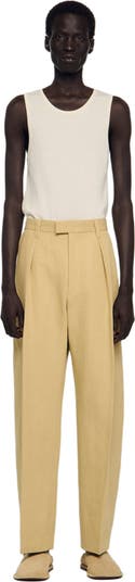 Lightweight pleated wide-leg trousers in cotton and linen.