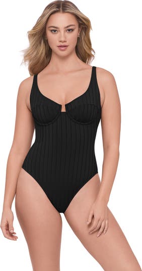 Wide Rib Scoop Neck Underwire One Piece Swimsuit