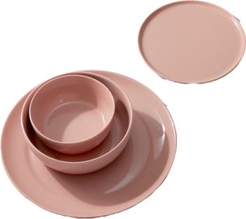 This 4 piece set covers all your needs from your morning coffee to late night cravings: | Large plate / with a wide rim | Medium plate /for breakfast, salad or dessert | Large bowl / for pasta, poke, stew or grains | Medium bowl / for cereal, soup or salad