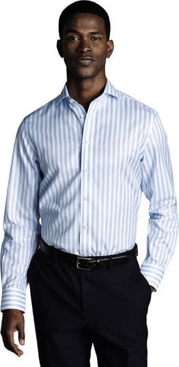 - Wide Stripe Non-Iron Twill Cutaway Slim Fit Shirt