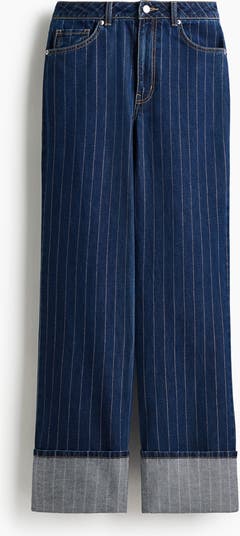 5-pocket jeans in denim that feels firm at first but then softens and loosens with wear. Wide leg with a regular fit from the waist to the hip and a wide cut from the thigh to the hem with a wide turn-up. Extra-high waist with a zip fly and button. Longer length, designed to fall over the foot with a stacking effect. A denim statement that goes the distance.
