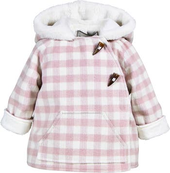 Keep little ones as cozy as they are cute in this woolly checked wrap jacket lined with soft, warm faux fur for extra warmth on the season's coldest days.