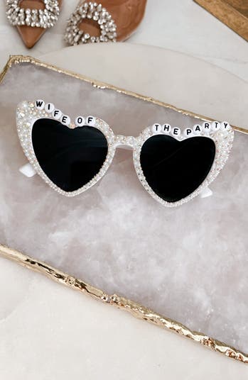 All heart eyes for these hand studded sunnies with crystals, pearls and the cutest "Wife Of The Party" lettering. Each pair is hand-made and therefore unique. Perfect for travel and doubles as the sweetest gift.