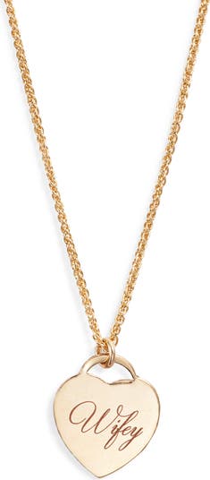 The bride can put her new title on display with this heart-shaped pendant necklace handcrafted from gleaming 14-karat gold fill.