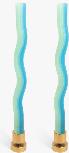Wiggle Candles combine a functional dining candle with fun, joy, and experiment. Bright color combinations are squeezed together in an undulating shape to create a sense of motion. Designed by Dutch designer Lex Pott, each pack of two fits standard candleholders and adds playful style to any table.