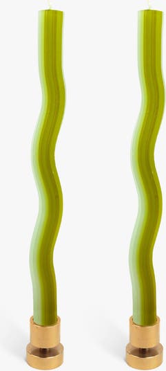 Wiggle Candles combine a functional dining candle with fun, joy, and experiment. Bright color combinations are squeezed together in an undulating shape to create a sense of motion. Designed by Dutch designer Lex Pott, each pack of two fits standard candleholders and adds playful style to any table.