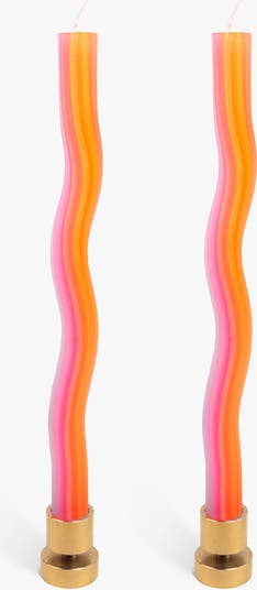 Wiggle Candles combine a functional dining candle with fun, joy, and experiment. Bright color combinations are squeezed together in an undulating shape to create a sense of motion. Designed by Dutch designer Lex Pott, each pack of two fits standard candleholders and adds playful style to any table.