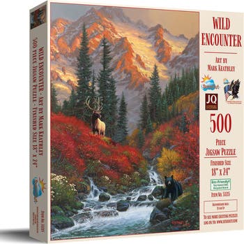Wild Encounter 500 pc Jigsaw Puzzle by SunsOut - 500 Piece Jigsaw Puzzle - Completed Size: 18" x 24" - Puzzle Artist: Mark Keathley - Interlocking Pieces and Durable Construction: SunsOut jigsaw puzzles feature interlocking pieces that fit securely, making assembly easier and reducing frustration. -Ages: 15 years and older - Perfect for adults and seniors. SunsOut puzzles ensure high manufacturing standards ensuring their commitment to quality and customer service. - SunsOut puzzles use soy based inks, high quality puzzle board. As this is a jigsaw puzzle: assembly is required and batteries are not required.