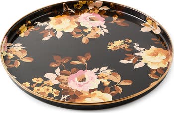 Wild Rose Brown Enamel Round Tray