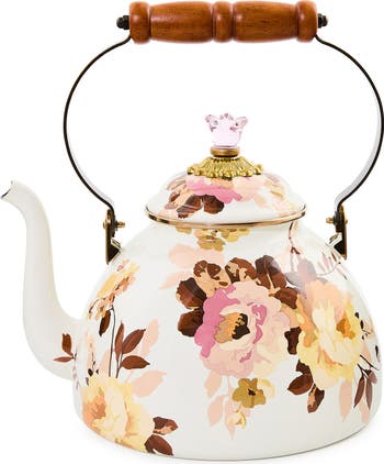 Wild Rose Enameled Steel 3-Quart Tea Kettle