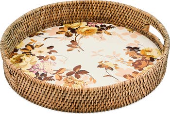 Woven rattan brings extra warmth to your table when you serve your favorite creations with this tray that's hand-painted on enameled steel.