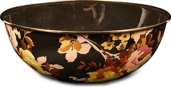 This generously sized, durable bowl is equipped to carry whatever the day brings and features hand-applies flower transfers and a bronze-finished rim that furthers the charming aesthetic of your tablescape or kitchen counter.