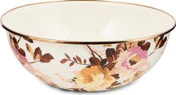 This generously sized, durable bowl is equipped to carry whatever the day brings and features hand-applies flower transfers and a bronze-finished rim that furthers the charming aesthetic of your tablescape or kitchen counter.