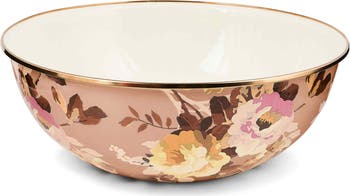 This generously sized, durable bowl is equipped to carry whatever the menu brings and features hand-applies flower transfers and a bronze-finished rim that furthers the charming aesthetic of your tablescape or kitchen counter.