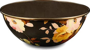 This generously sized, durable bowl is equipped to carry whatever the day brings and features hand-applies flower transfers and a bronze-finished rim that furthers the charming aesthetic of your tablescape or kitchen counter.