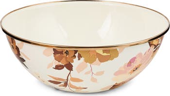 This generously sized, durable bowl is equipped to carry whatever the day brings and features hand-applies flower transfers and a bronze-finished rim that furthers the charming aesthetic of your tablescape or kitchen counter.