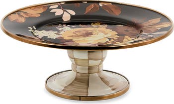 Fanciful hand-applied blossoms complement the painted color-dragged checks on this stainless-steel pedestal platter that adds a dose of panache to your warm, welcoming table.