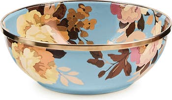This generously sized, durable bowl is equipped to carry whatever the menu brings and features hand-applies flower transfers and a bronze-finished rim that furthers the charming aesthetic of your tablescape or kitchen counter.