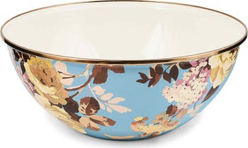 This generously sized, durable bowl is equipped to carry whatever the menu brings and features hand-applies flower transfers and a bronze-finished rim that furthers the charming aesthetic of your tablescape or kitchen counter.