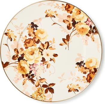 Designed for passing, piling and showing off, this serving platter blends durability with delight. Heavy-gauge steel anchors the form, painterly flowers deliver a joyful pop of color and a bronzed stainless steel rim keeps the finish sharp and luminous.