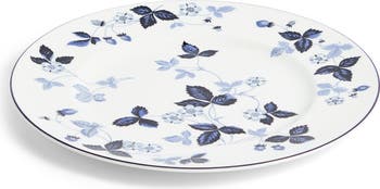 Hand-drawn vines and plump strawberries dance around this dinner plate made of fine bone china.