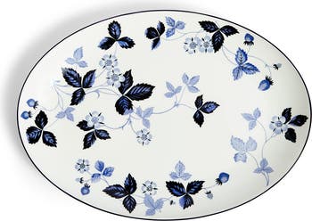 A contemporary take on a classic design, this oval serving plate made from fine bone china features a quintessential English pattern of hand-drawn vines and strawberries.