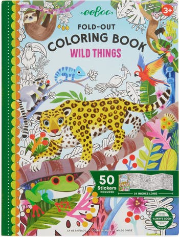 Linda Bleck’s intricate wildlife mural folds out for an amazing, oversized coloring experience. The back offers an additional illustrated landscape perfect for coloring and stickering.