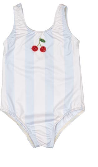 A swimsuit that makes a splash with playful charm. Our Cherry Swimsuit in Blue Stripe features a fun blue stripe pattern adorned with cheerful cherry details that's perfect for poolside fun and beach adventures. Thoughtfully designed for comfort and movement, this swimsuit allows little ones to play freely in and out of the water. Crafted with quality materials that dry quickly and maintain their shape, this swimsuit is built to last through countless sun-soaked memories. Made slowly and with intention in Peru, this charming swimsuit is the kind of piece that becomes a summer favorite—ready for every beach trip and pool day.