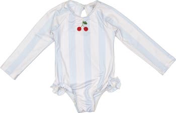 A swimsuit that makes a splash with playful charm. Our L/S Cherry Swimsuit in Blue Stripe features long sleeves for added sun protection and a fun blue stripe pattern adorned with cheerful cherry details. Thoughtfully designed for comfort and movement, this swimsuit allows little ones to play freely in and out of the water while keeping them protected from the sun. Crafted with quality materials that dry quickly and maintain their shape, this swimsuit is built to last through countless sun-soaked memories. Made slowly and with intention in Peru, this charming swimsuit is the kind of piece that becomes a summer favorite—ready for every beach trip and pool day.