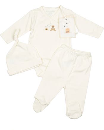 The earliest days deserve something truly special. Our Pima Embroidered Bundle Set wraps your little one in the softest comfort with thoughtful details that feel like heirlooms. Crafted from 100% Pima cotton, this 3-piece set is gentle on delicate newborn skin and perfect for all-day wear. The kimono-style cross front makes dressing peaceful and easy, while snaps at the inseam allow for quick diaper changes without any fuss. Each piece features intricate hand-embroidered bunny details that add a touch of whimsy and charm. The long sleeve bodysuit, footed pants, and matching beanie come together as a complete look for everyday snuggles, first photos, or that precious welcome-home moment. A versatile set you'll reach for again and again and treasure long after those newborn days have passed. Lovingly made in Peru.
