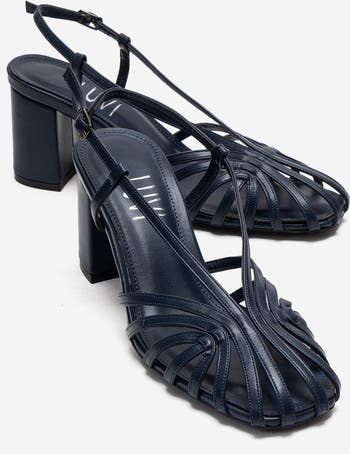 A contemporary block-heel pump featuring slim strap accents and an adjustable ankle strap for balanced comfort and style