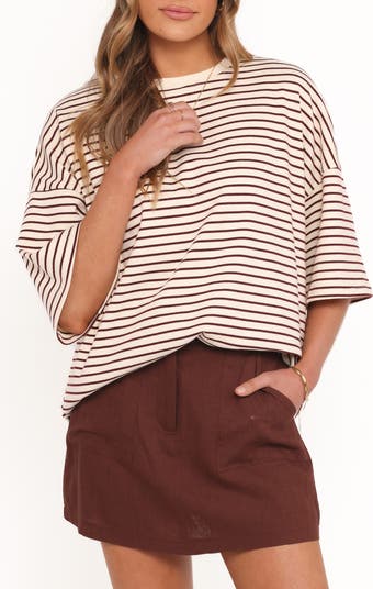 Stripes race across this oversized T-shirt fashioned with the perfect amount of stretch to become your comfy go-to.