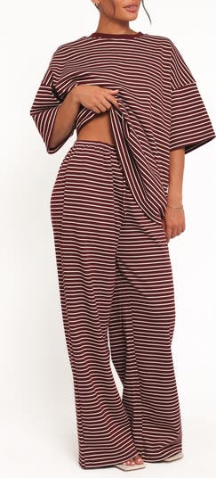 Allover stripes enliven these soft knit pants punctuated with flowy wide legs.