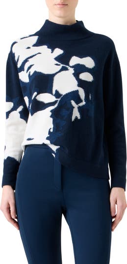 Wildflower Intarsia Cashmere Mock Neck Sweater