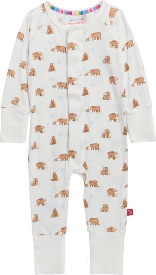 Little ones will love the adorable bear print and soft fabric of this long-sleeve romper fastened with SewSafe™ magnetic closures for quick, easy changes. Foldover cuffs let you convert this romper to a footie and enhance baby's coziness.
