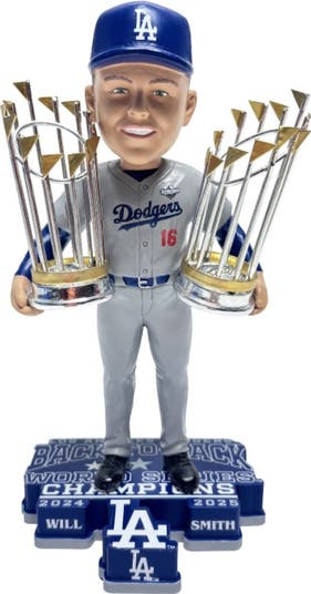 Will Smith (Los Angeles Dodgers) 2025 World Seriess Back to Back Champs Bobblehead. Bobbleheads are high quality made by FOCO. Approximately 8 inches tall.