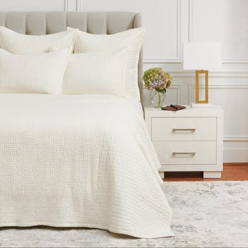 The Willa Ivory quilt features two complementary quilting styles, both hand-stitched by skilled artisans for a uniquely luxurious experience. This lightweight 100% cotton voile collection is the perfect neutral backdrop upon which to build a personal retreat.