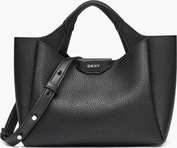 The DKNY Willa Mini Satchel is a chic and versatile bag, perfect for carrying your essentials in style. Featuring a detachable shoulder strap and a fully lined interior with a middle zipper pocket, it offers both hands-free convenience and organized storage. Ideal for day-to-night wear, this satchel complements any outfit effortlessly.
