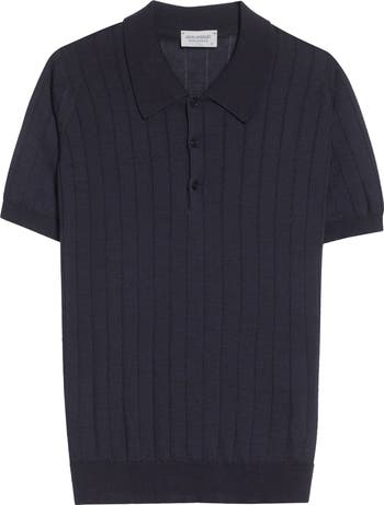 This fitted polo-sweater is knit in a wide rib stitch from a lightweight blend of soft merino wool and breathable cotton for endless comfort. This versatile, long-wearing piece from the renowned British knit house moves easily between smart and casual settings.