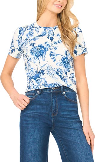 Tonal florals tinged with charming butterflies elevate the laid-back look of this knit T-shirt cut in a relaxed silhouette.