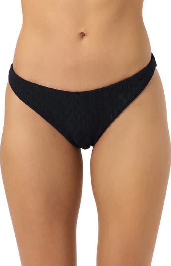 A woven-inspired textured takes center stage on these cheeky bikini bottoms that are perfect for beachside hangouts.