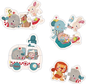 Join Wilma Whale on a life-saving ambulance mission with this figure puzzle for toddlers—crafted from premium-grade cardboard with progressive difficulty levels. Designed for ages 2 and up, this preschool puzzle set features four puzzles of increasing challenge—2, 4, 6, and 8 pieces—each depicting scenes from Wilma Whale’s ambulance adventures. As toddlers solve each puzzle, they build confidence while boosting fine motor skills, shape recognition, and early number awareness. Bright illustrations and sturdy blue-edge pieces inspire imaginative storytelling and roleplay beyond puzzle time. Designed in Europe, the Bababoo and friends® Wilma Whale Ambulance Figure Puzzle is made from high-grade blue-edge cardboard for a snug fit and exceptional durability.