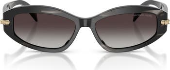 Angular oval frames with golden logos at the edges enhance the sophisticated allure of these Italian-made sunglasses fitted with UV-protective lenses.